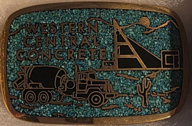 Vintage Metal Belt Buckle, Solid Brass, Blue Crushed Turquoise Stones, Western Central Concrete, Cement